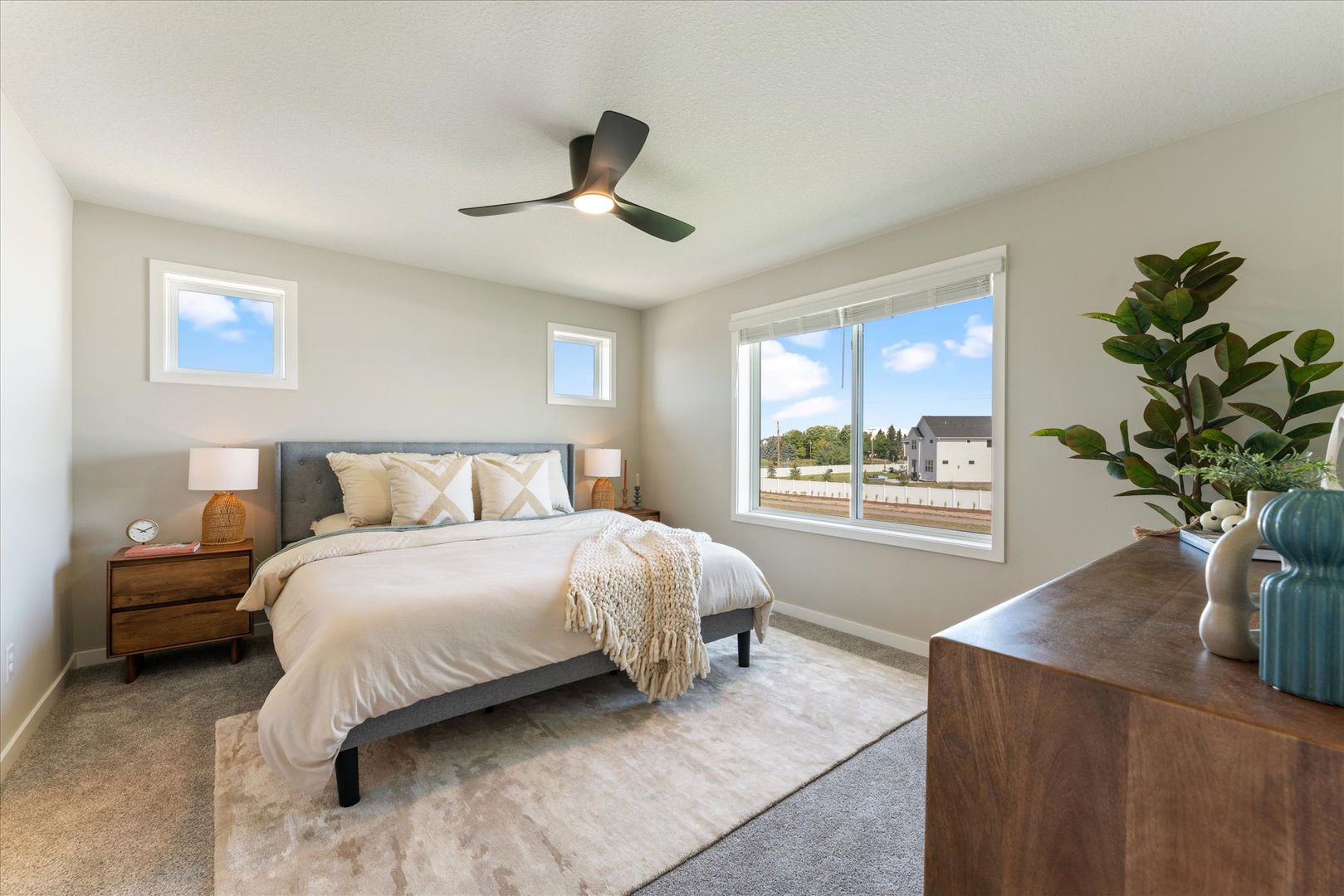 The primary bedroom features an en suite bathroom, with walk-in shower and double sinks, and a generously sized walk-in closet.